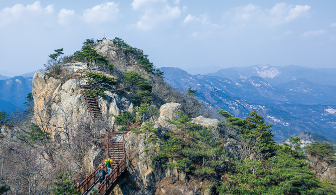 속리산국립공원의 다양한 산줄기가 한눈에 들어오는 장면은 산행의 피로를 잊게 만든다.